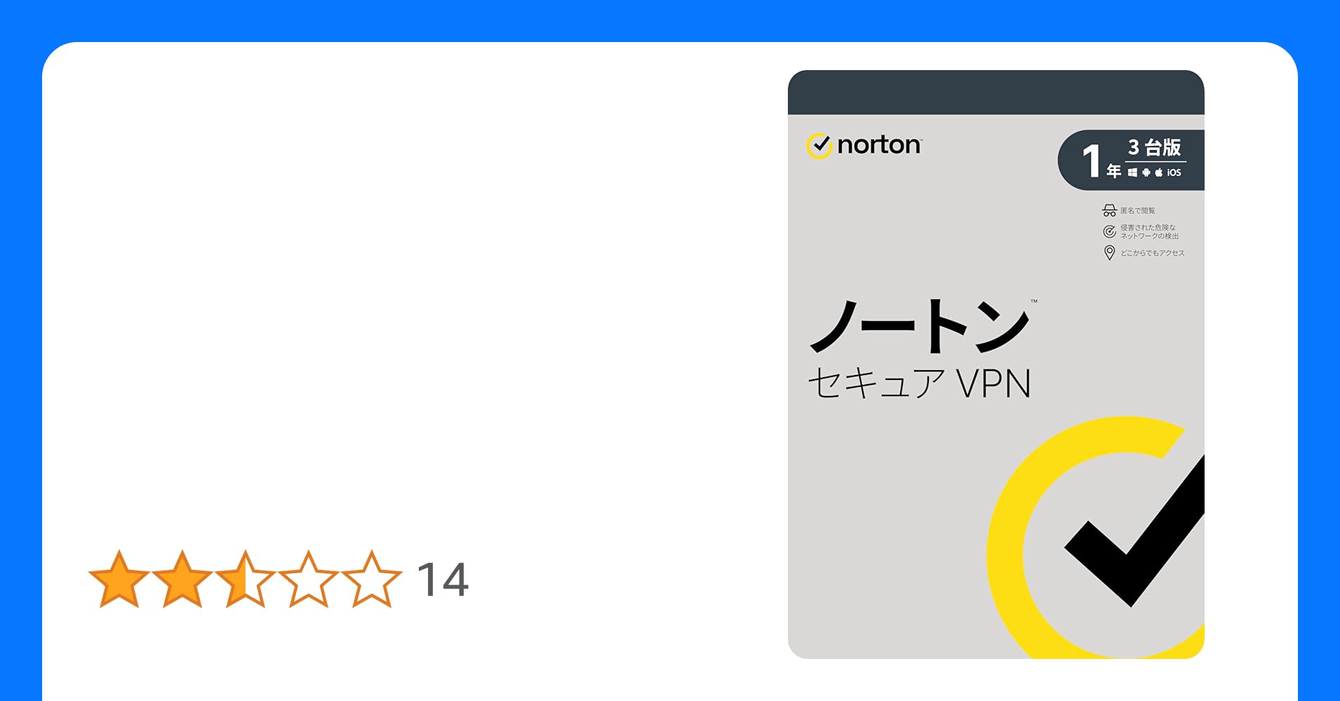 | Norton Secure VPN | セキュリティソフトで有名なノートンが提供。Wi-Fi保護機能や広告トラッカー遮断機能あり。 | 約500円〜(単体プラン) |